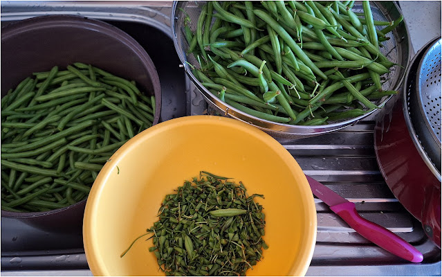 Část fazolek jsem nechala dozrát na semeno a také na dobrou fazolačku. Lusky se ale ještě suší.